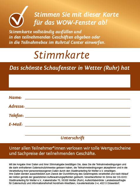 Der Stadtmarketingverein Wetter e.V. und die Stadt Wetter (Ruhr) laden zum vierten Schaufenster-Wettbewerb ein. Ein ansprechend gestaltetes Schaufenster ist die Visitenkarte eines Geschäfts: Es weckt Neugier, zieht Passant*innen an und lädt zum Verweilen ein.